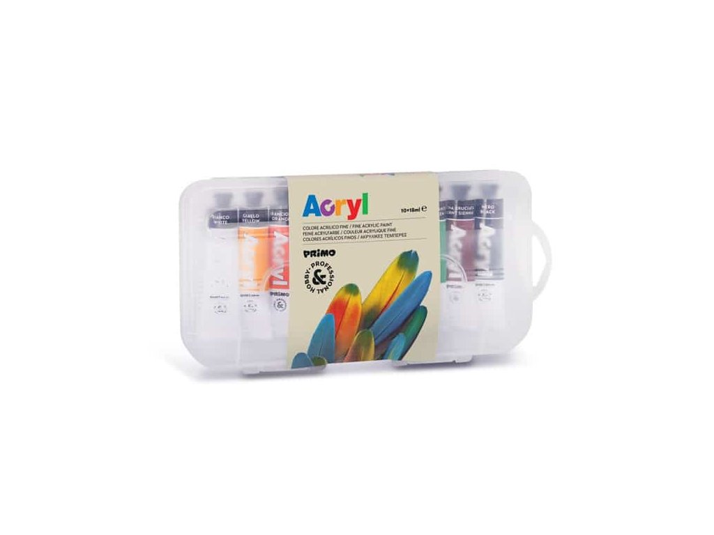 Akrylové barvy PRIMO, sada 10 x 18ml, tuby