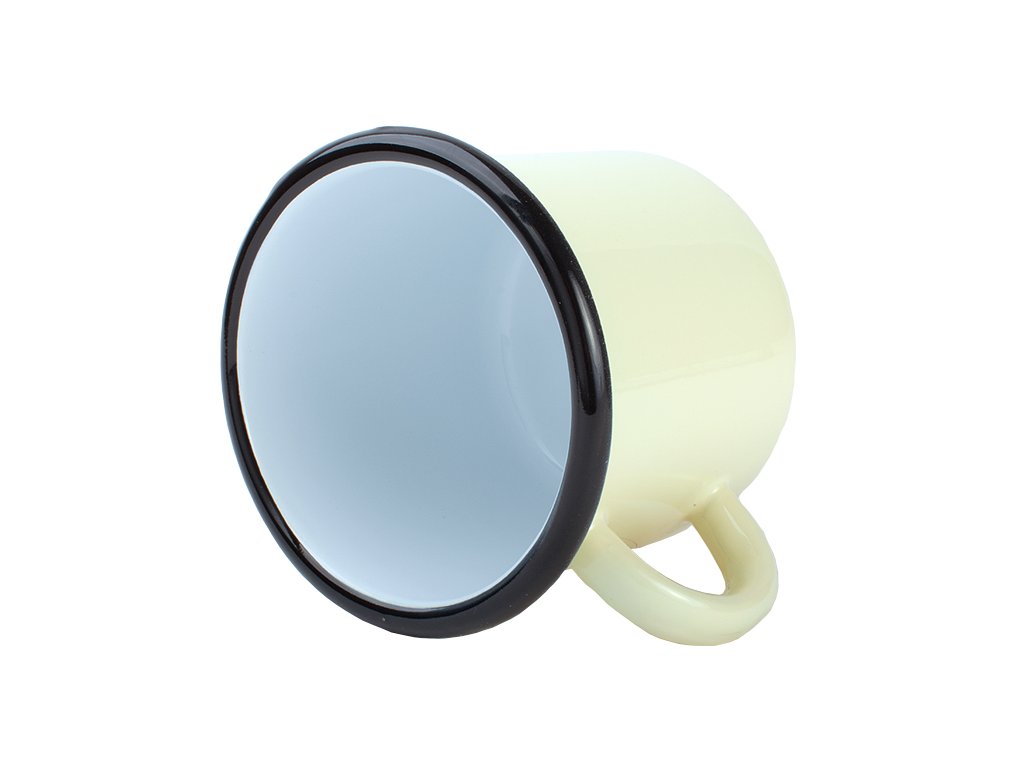 Exklusivní barevný plecháček s černým lemem a povrstvením vhodným pro potisk bílým tonerem nebo černou barvou pomocí barevné nebo černobílé laserové tiskárny. Oproti čínským plecháčkům má méně vad a je o 20% těžší tzn. Je použito více materiálu. Díky těmto vlastnostem se ouško po nalití horké tekutiny zahřívá minimálně. Díky Evropské produkci jsem schopni pružně doplňovat skladovou dostupnost a nabídnout i neobvyklé barevné varianty. Např. Žlutý vnitřek a černá matná zvenku.