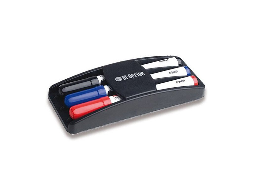› PRO KANCELÁŘ › Tabule a prezentační systémy › Příslušenství k tabulím a flipchartům › Popisovače a držáky › basicset-sada 3 popisovačů na bílé tabule ve stěrce na bílé povrchy