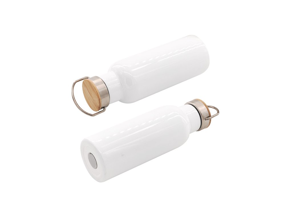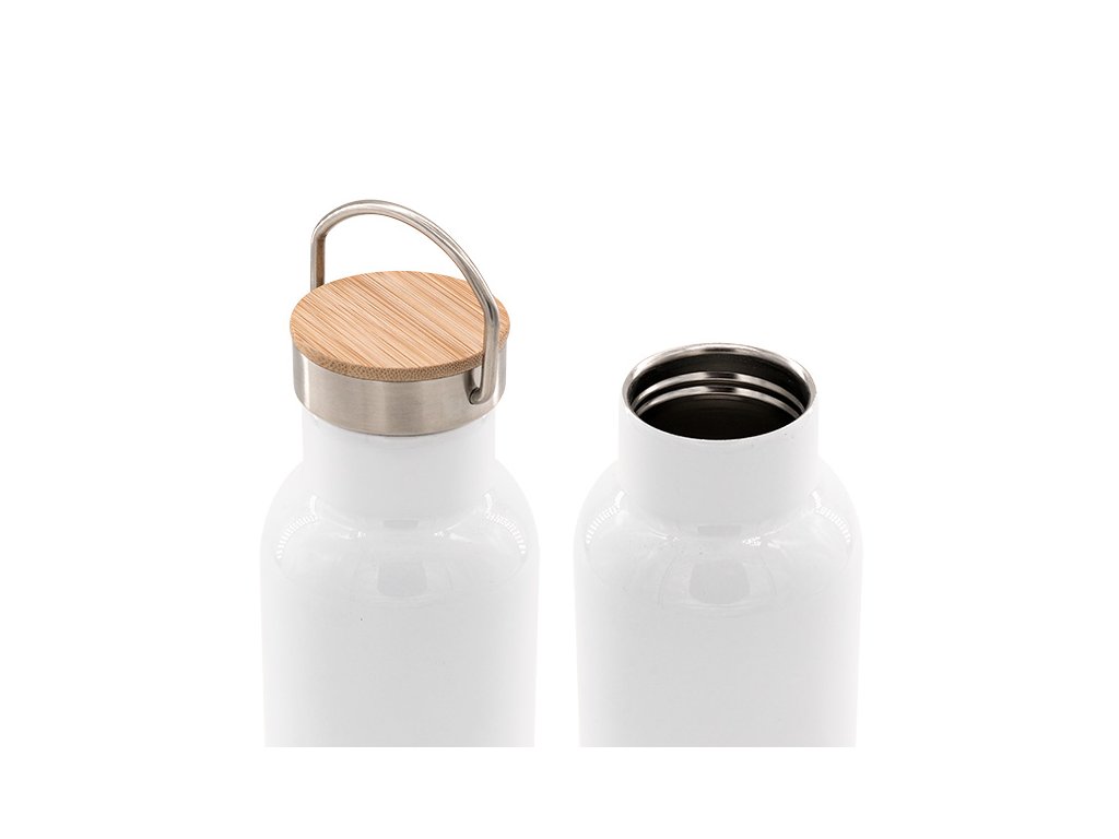 Elegantní cestovní bílá termoska pro potisk sublimací se šroubovacím bambusovým víčkem a praktickým sklopným nerezovým poutkem. Samotné víčko má několik předností - silikonové těsnění, šroubovací uzávěr z nerezové oceli a samotný bambusovvý vršek s antibakteriálním povrchem. Do bambusu lze gravírovat nebo laserovat. Lze potisknout pomocí laserové tiskárny a fólie FOREVER Multitrans PLUS.