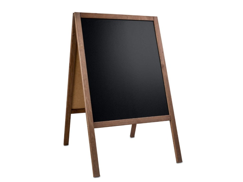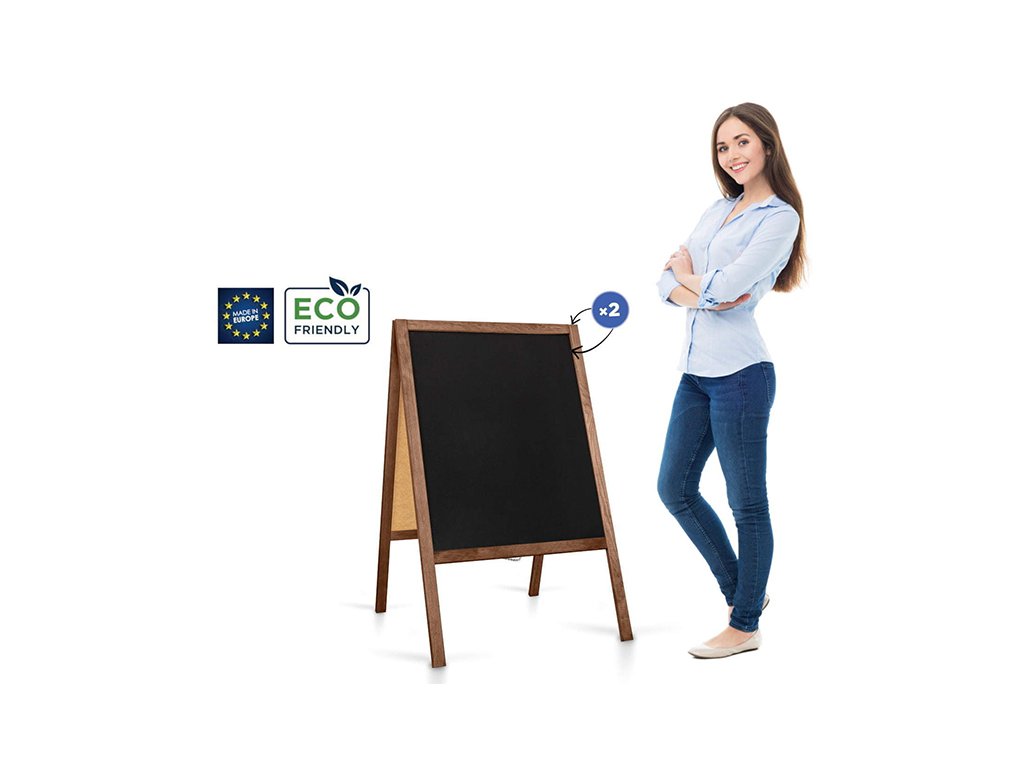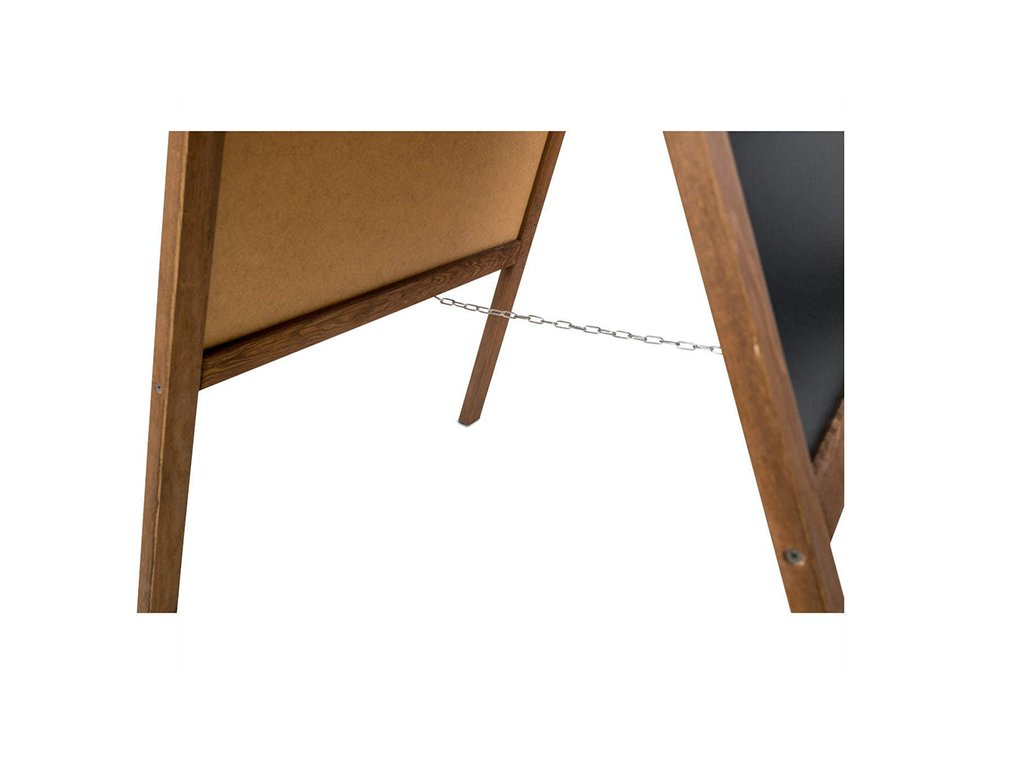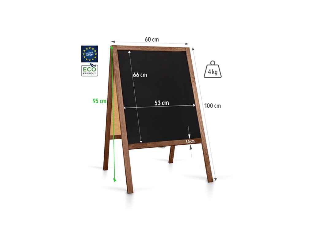 Tento reklamní stojan je ideální pro použití v restauracích a různých komerčních prostorech. Psací plocha je vyrobena z velmi praktické křídové desky, kterou lze ji snadno vyčistit a nahradit novými informacemi. Navíc je stojan estetický, všestranný a vejde se do každého prostoru. Díky dřevěnému rámu je tato cedule velmi stabilní.