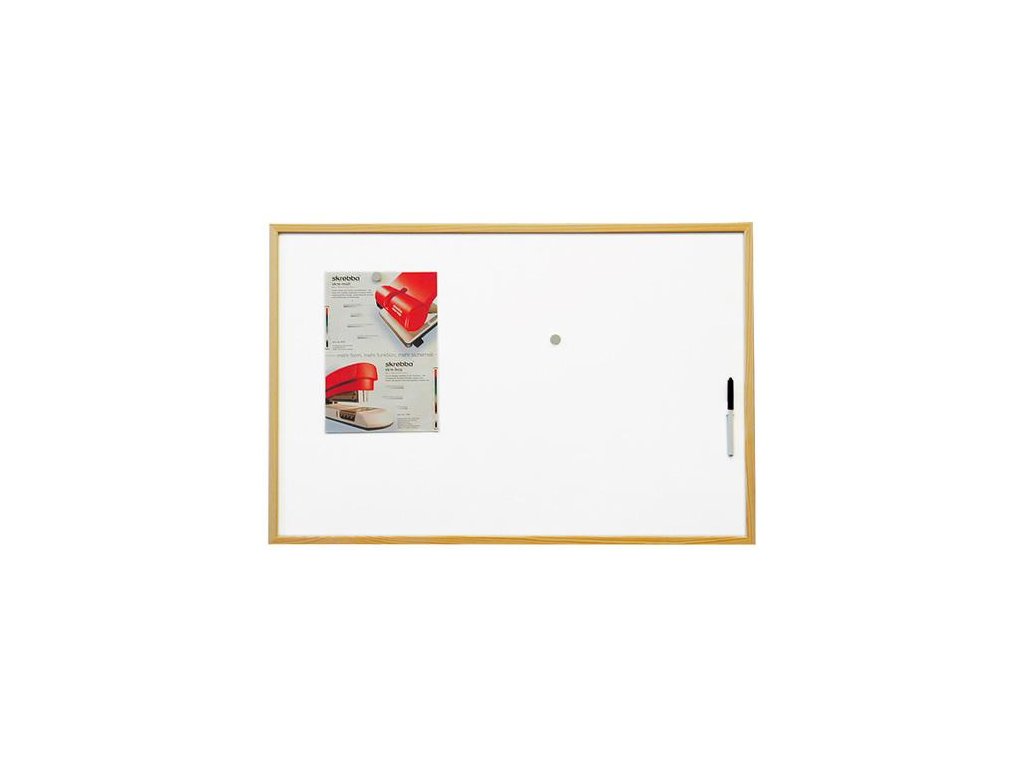 Bílá magnetická tabule 60 x 40 cm s lakovaným povrchem a dřevěným rámem.