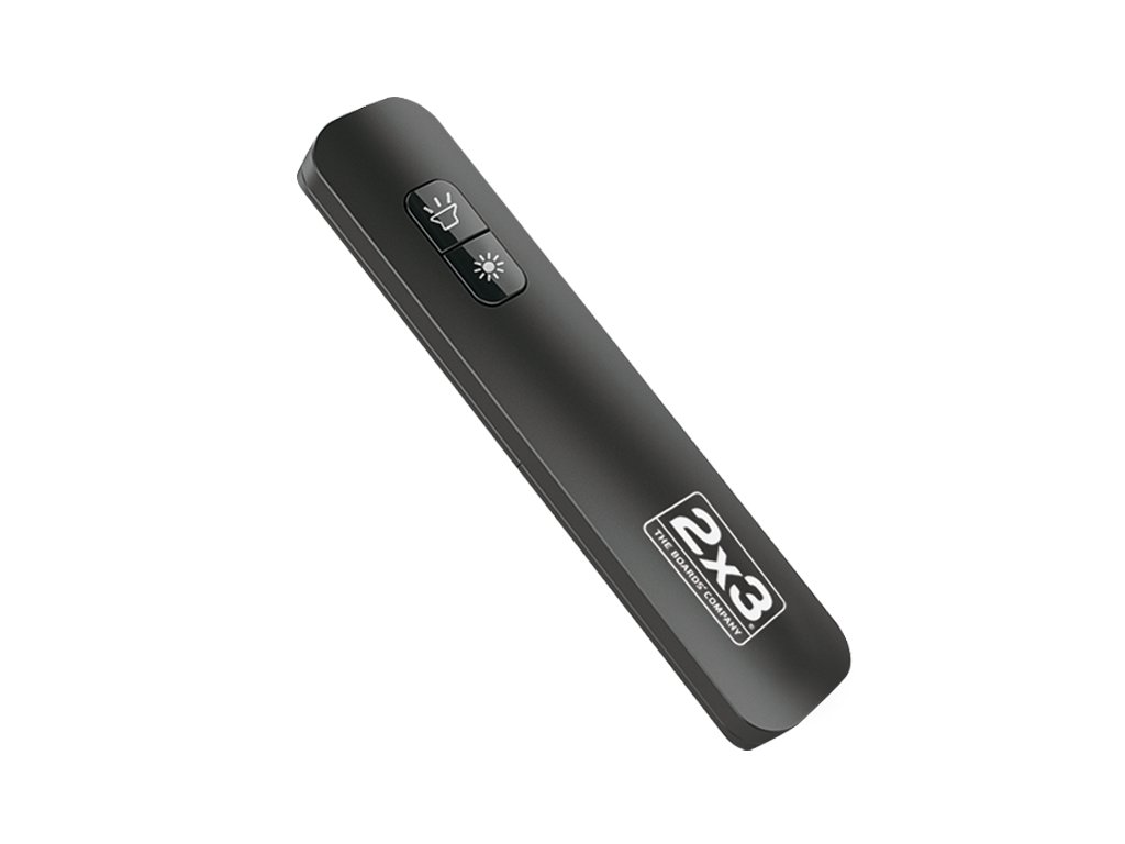 Elegantní, moderní laserové ukazovátko se zeleným paprskem a integorvanou LED svítilnou.