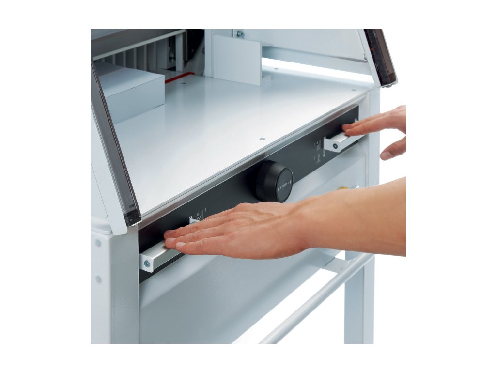 - Elektronické ruční kolečko pro manuální nastavení zadního dorazu s plynulou regulací otáček