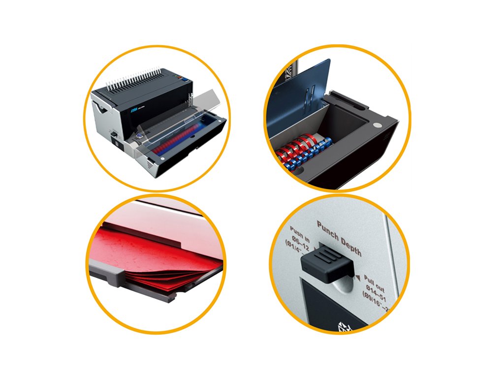 Elegantní elektrický stroj pro kroužkovou vazbu s novým originálním designem, který dbá na vysokou míru stability.