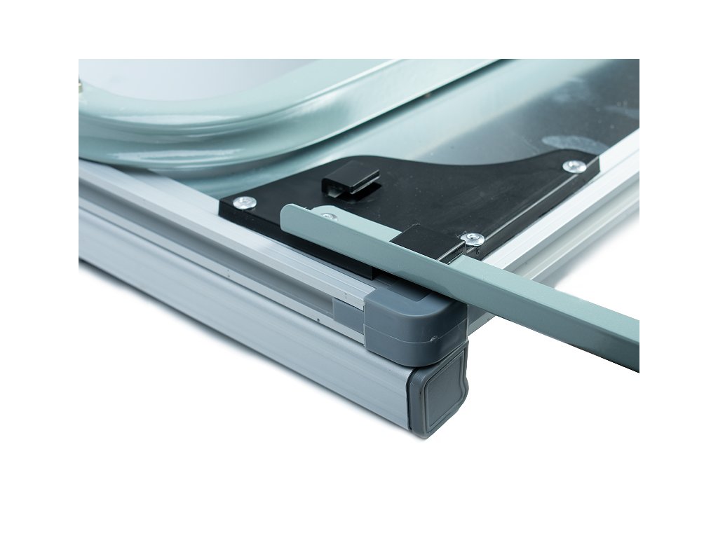 Magnetický flipchart s výsuvnými rameny, popisovatelný, výškově nastavitelný.