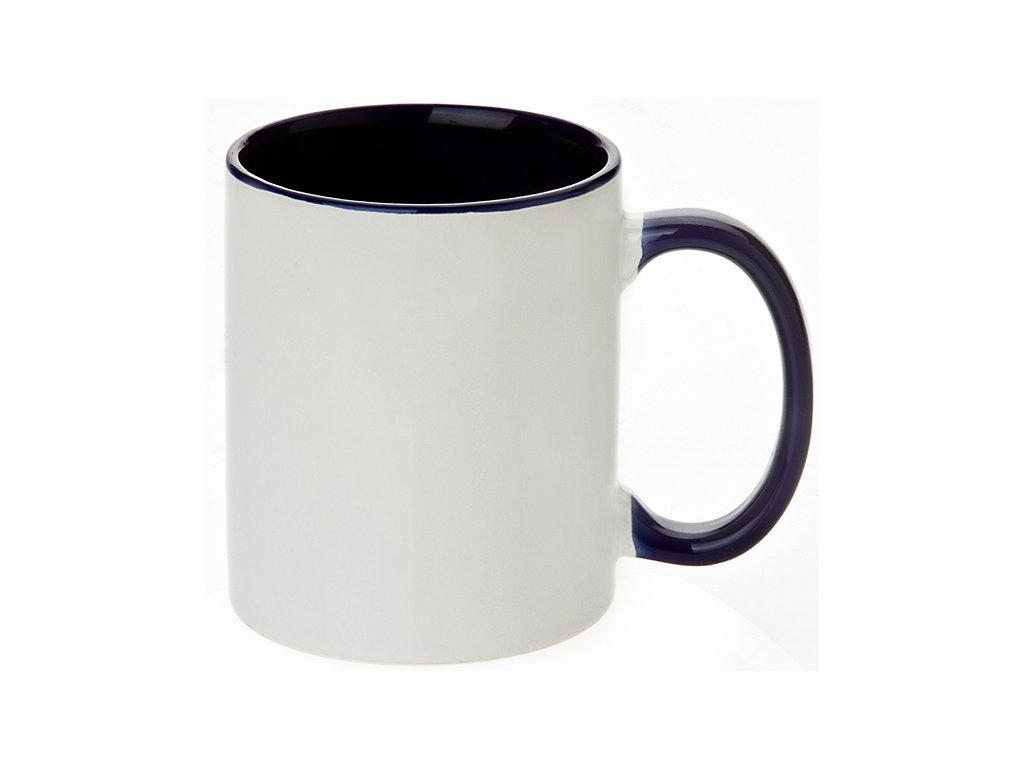 Keramický bílý hrnek s barevným vnitřkem a uchem pro sublimační potisk.