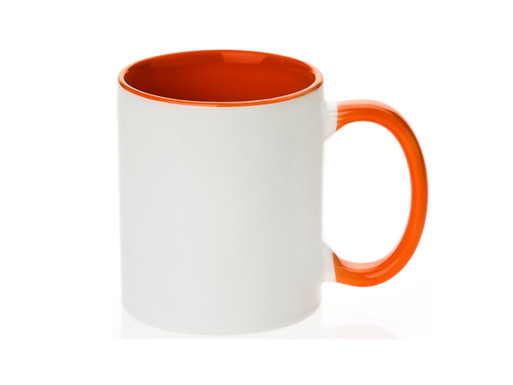 Keramický bílý hrnek s barevným vnitřkem a uchem pro sublimační potisk. Špičkové barevné podání a dlouhá životnost při mytí v myčce.