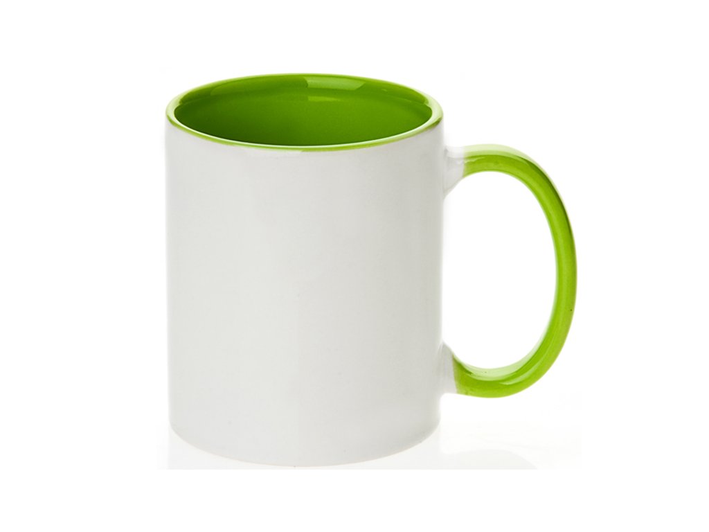 Keramický bílý hrnek s barevným vnitřkem a uchem pro sublimační potisk. Špičkové barevné podání a dlouhá životnost při mytí v myčce.