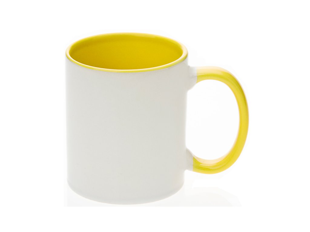 Keramický bílý hrnek s barevným vnitřkem a uchem pro sublimační potisk. Špičkové barevné podání a dlouhá životnost při mytí v myčce.