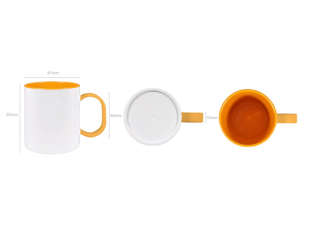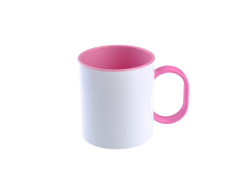 Hrnek bílý s barevným vnitřkem a uchem v barvě růžové - vyrobený ze sublimačního polymeru vypadá docela podobně jako běžný keramický hrnek na kávu, přesto je zcela bez sublimačního povlaku. Tento hrnek je vyroben z polymerového materiálu šetrného k barvivům sublimační barvy s vysoce lesklým povrchem a ultra bílé tělo hrnečku.