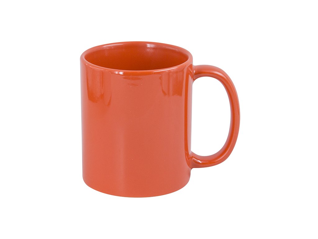 Keramický hrnek typu English se speciální glazurou pro potisk technologií s bílým tonerem pomocí fólie Multitrans nebo pomocí běžné laserové tiskárny díky fólii Multitrans Gold, Silver a White - barva oranžová.