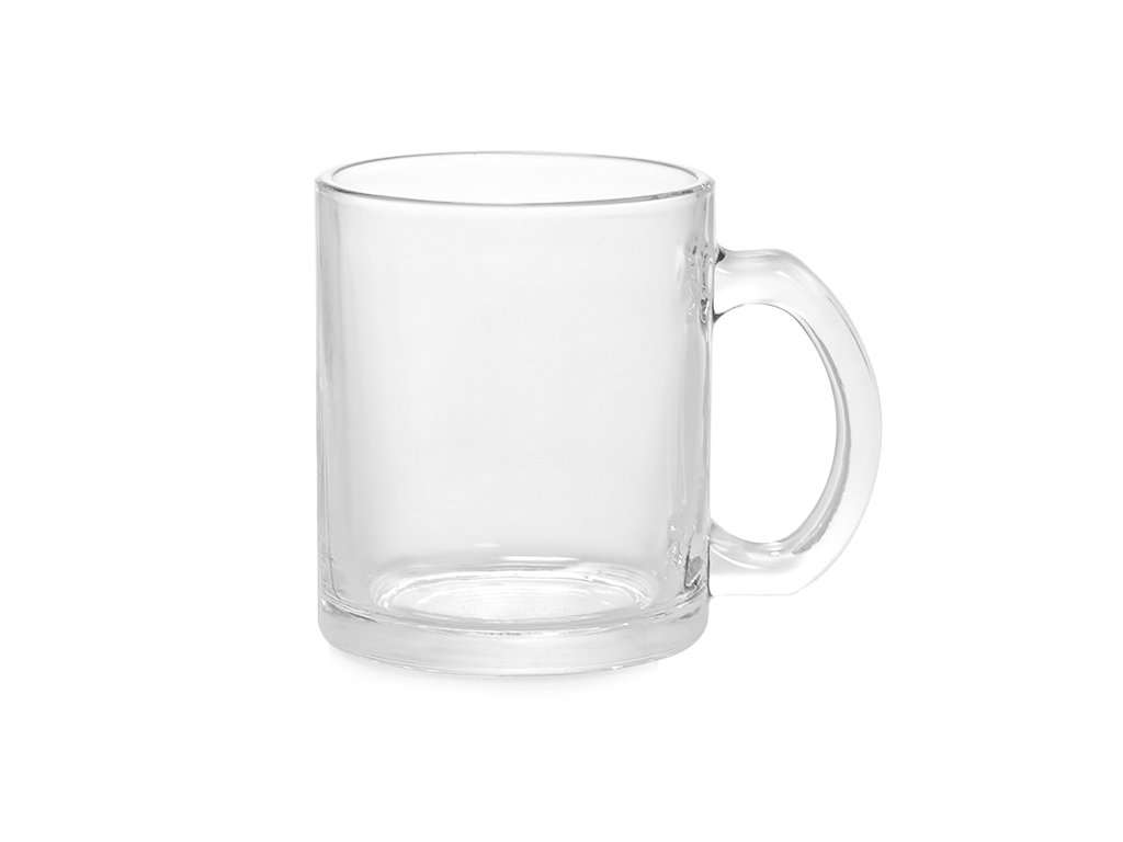 Skleněný lesklý průhledný hrnek pro potisk sublimací neb technologii s bílým tonerem pomocí fólie Multitrans nebo PolartNew. Lze použít i fólie Multitrans Selection s potiskem bílou, stříbrnou nebo zlatou barvou pomocí běžné laserové tiskárny.