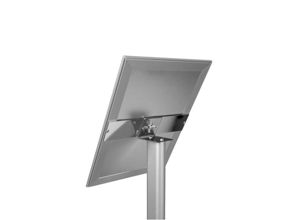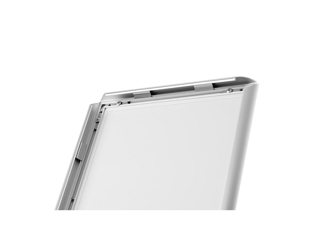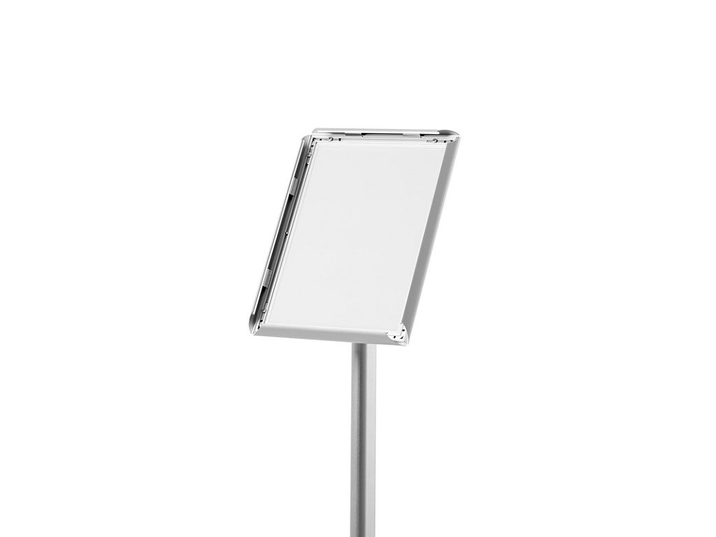 Výjimečně stylový a vzhledově atraktivní zaklapávací rámový stojan určený pro položky jako je jídelní lístek restaurace, ukazatel směru, informační tabule atd. Výměna plakátu zabere několik sekund a funguje jako zaklapávací rámový systém. Konstrukce je vyrobena ze stylového eloxovaného hliníku. Základna je zatížena kovovou deskou s plastovým krytem, což umožňuje v případě znečištění lze základnu umýt. Prezentační plochu lze přetáčet pro preznetací na výšku či na šířku.