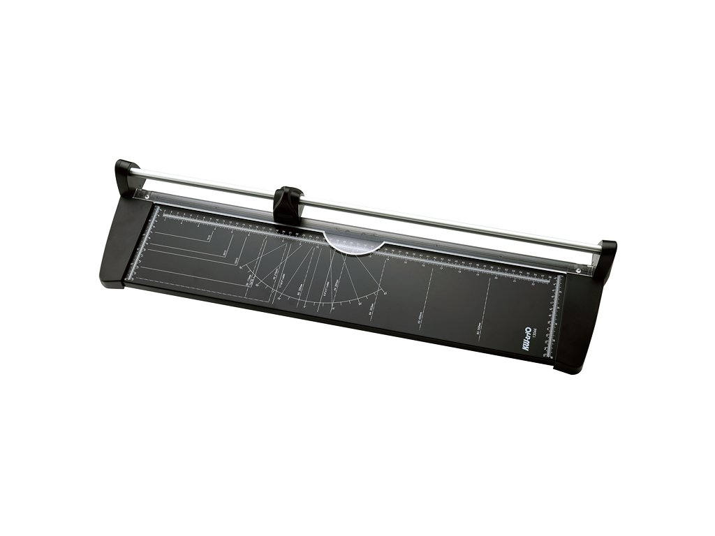 Kotoučová řezačka s broušeným kolečkem na profilované tyči s délkou řezu 580mm. Pracovní stůl je vybaven natištěnými měřítky a úhly, nechybí přítlačná lišta z průhledného plastu. Řezačka díky své konstrukci uřízne 10 listů papíru (80g/m2) formátu A2.