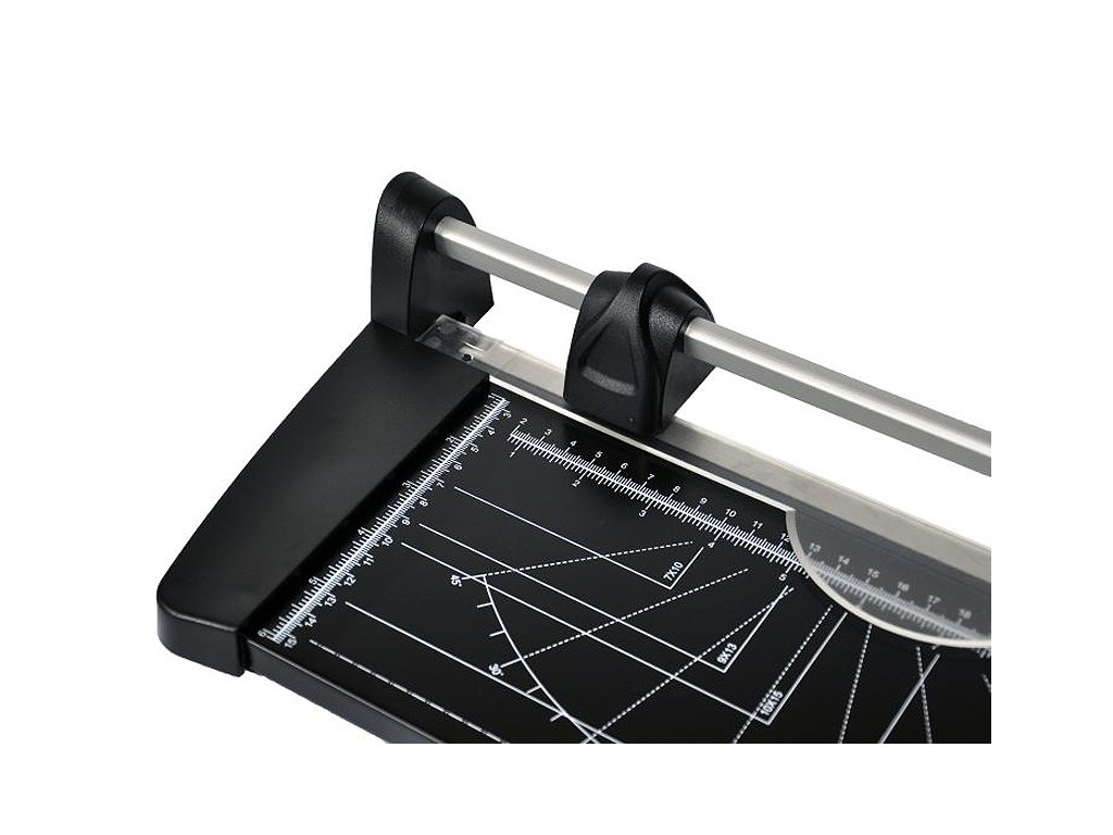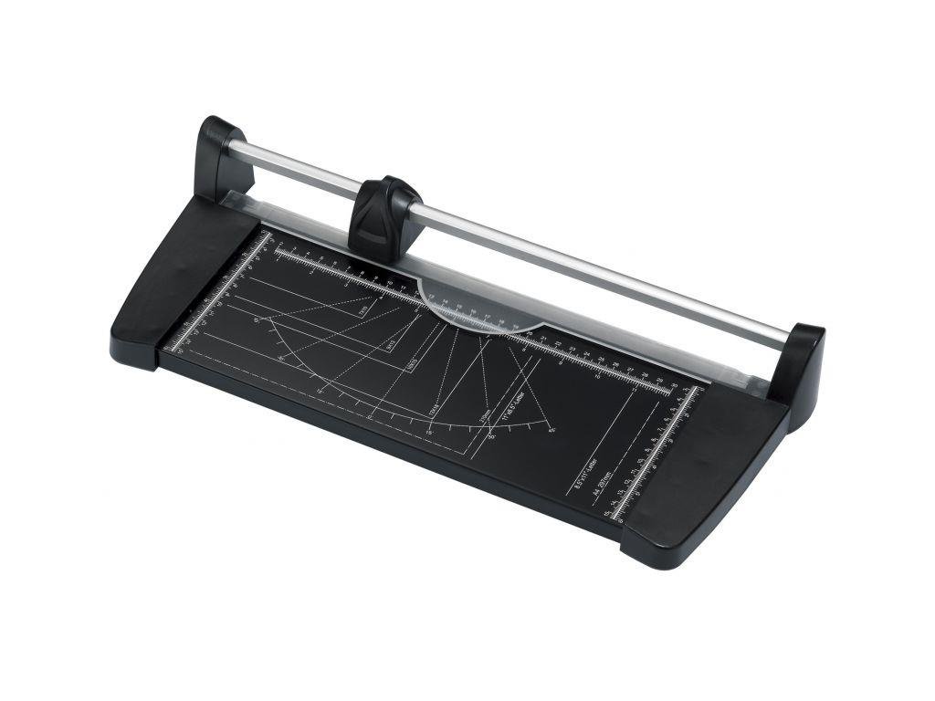 Kotoučová řezačka s broušeným kolečkem na profilované tyči s délkou řezu 450mm. Pracovní stůl je vybaven natištěnými měřítky a úhly, nechybí přítlačná lišta z průhledného plastu. Řezačka díky své konstrukci uřízne10 listů papíru (80g/m2) formátu A3.