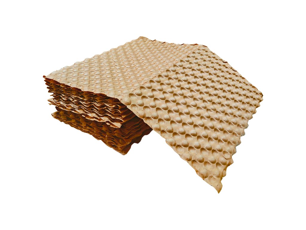 Kraftové papíry jsou vyrobeny z přírodních jehličnatých pryskyřičných vláken, která se dají degradovat a rozložit, takže nezatěžují životní prostředí. Papír je vytlačován strojem na papírové podložky, aby se stala papírovým polštářem, který lze použít k zabalení předmětů nebo vyplnění prostoru s dobrým tlumícím účinkem. Je to preferovaná alternativa plastových bublinkových obalů.