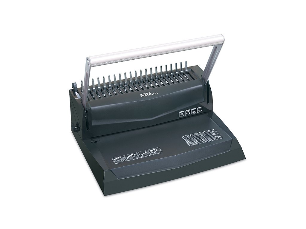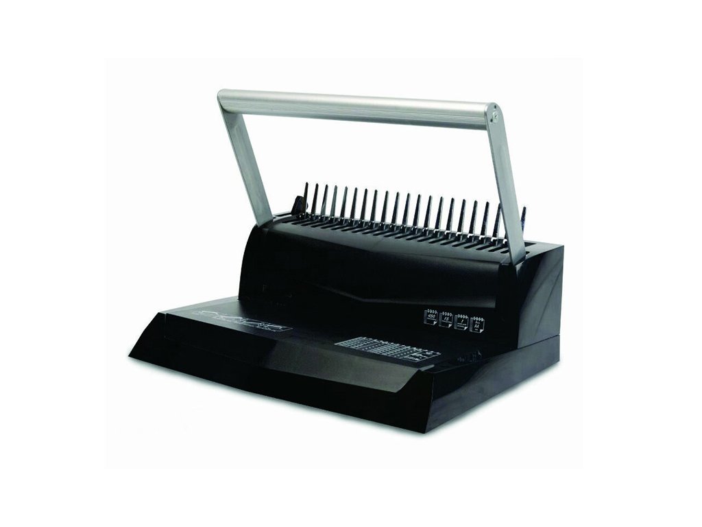 Najednou prosekne až 15 listů (21 otvorů) a sváže 450 listů. Má nastavitelný postranní doraz a hloubku prosekávání. Součástí je i zásuvka na odpad.
