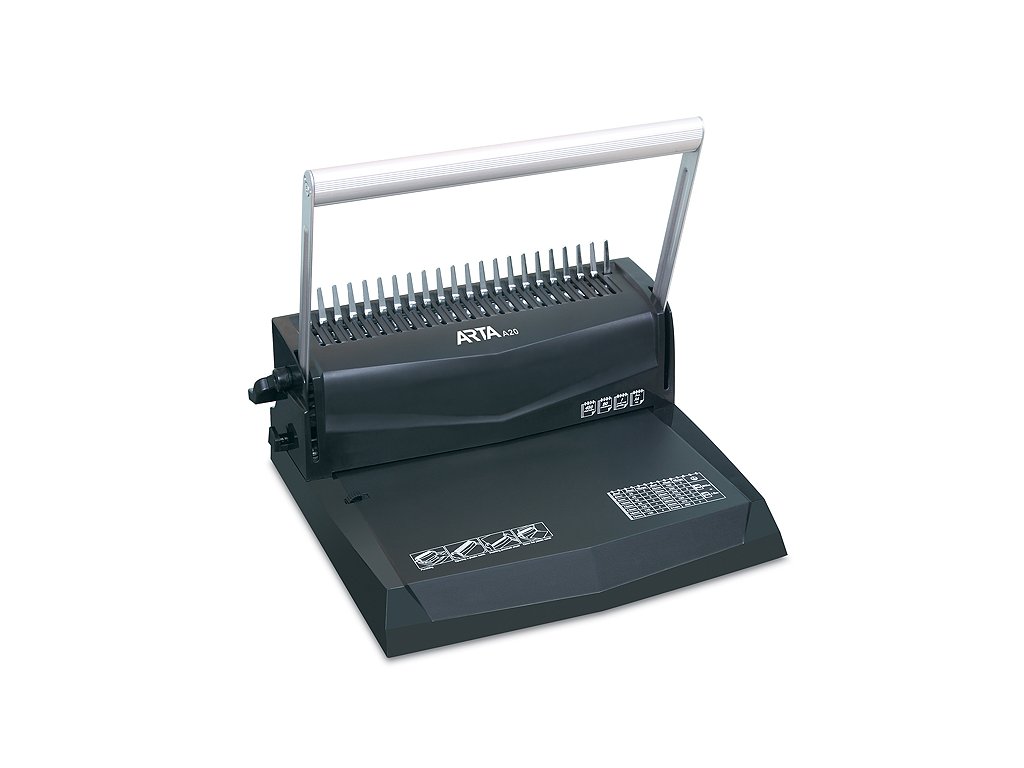 Je vybaven oddělenými pákami pro děrování a roztažení kroužku. Najednou prosekne až 20 listů (21 otvorů) a sváže 450 listů 80 g papíru.