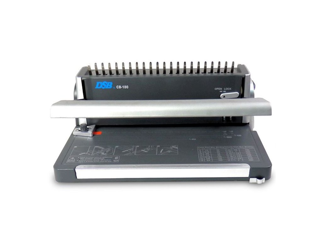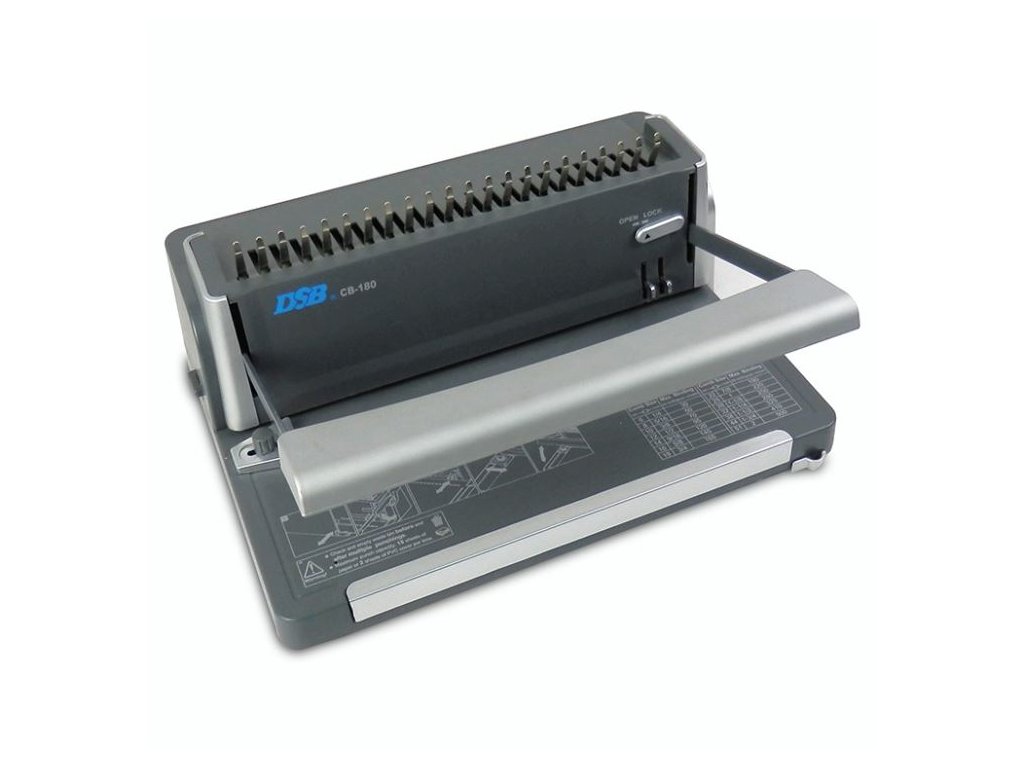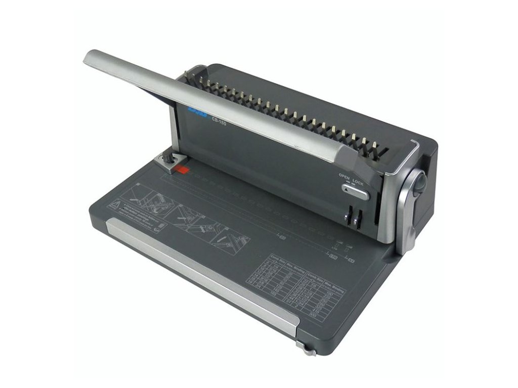 Vazač pro plastovou vazbu s inovativním designem a praktickými doplňky.