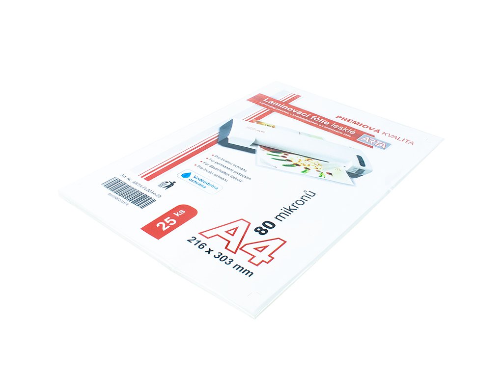 Formátové laminovací fólie ARTA ve formátu A4 a síle 80 mic. Baleno po 25 kusech. Ideální řešení pro domácnosti a malé kanceláře.
