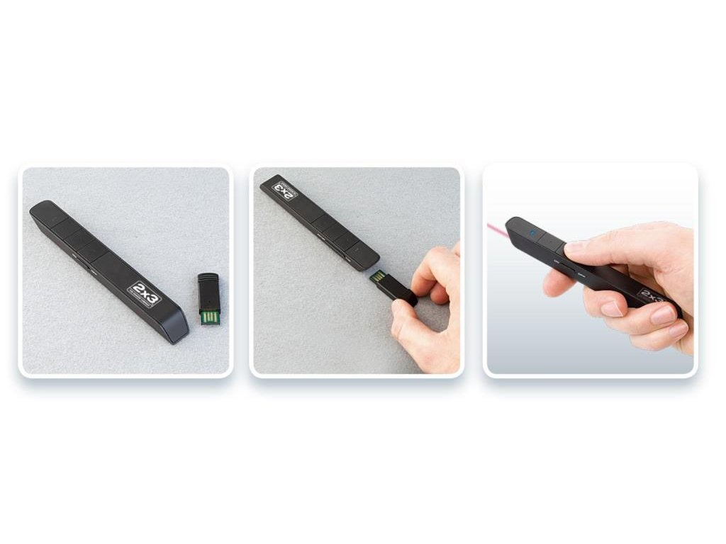 Profesionální dálkové ovládání pro vzdálenou prezentaci, které také provádí funkci laserového ukazovátka. Velmi lehké a snadno použitelné. Díky své malé velikosti se snadno vejde do kapsy. Produkt je navíc dodáván s tlačítky s rolovací funkcí skladeb připravených v aplikaci PowerPoint