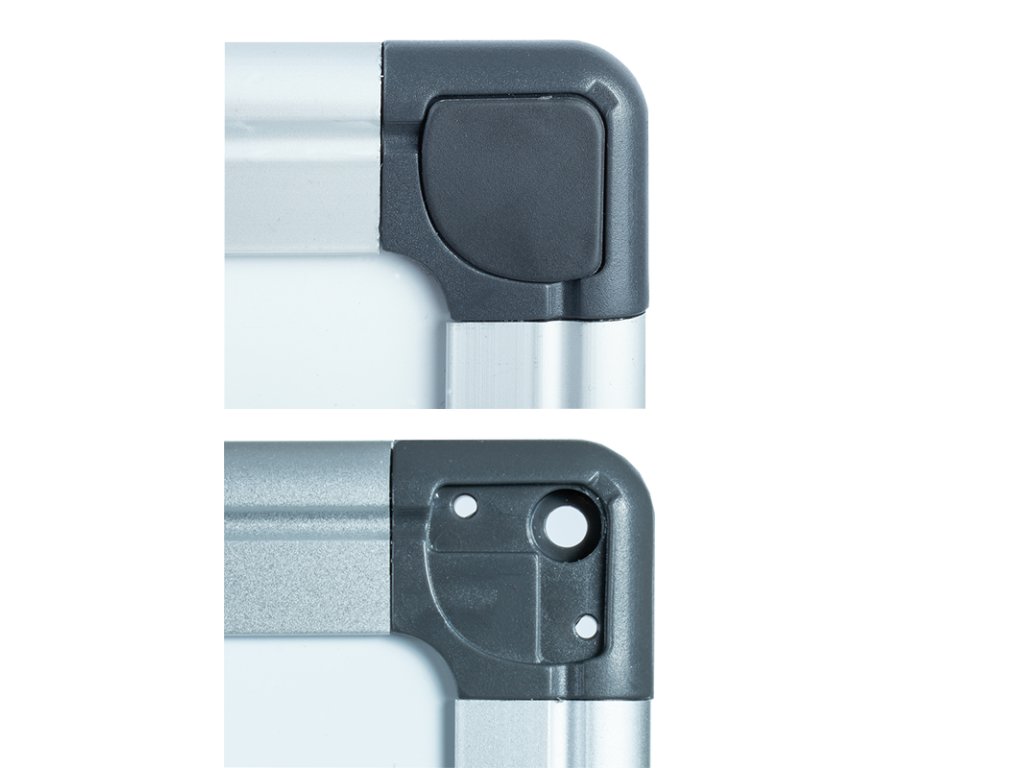 - Robustní rohové spojky pro připevnění na zeď s designovými krytkami.