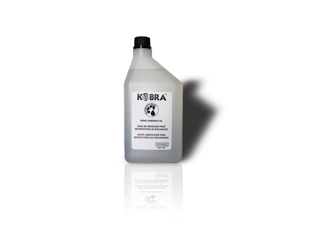 Mazací a čistící olej KOBRA 1 litr je kompatibilní se všemi skartovači Kobra. Vysoce viskózní olej je ideální pro udržení optimálního výkonu skartovače a umožňuje pravidelné mazání řezných nožů.
