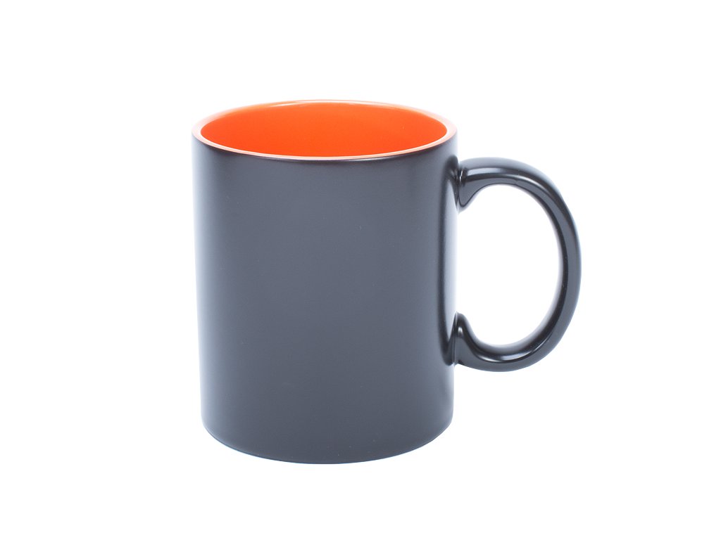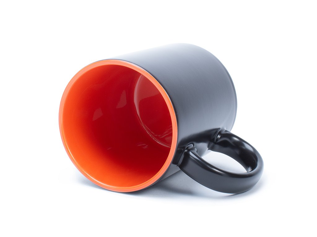 Měnící se černý hrneček s matným povrchem a oranžovým vnitřkem