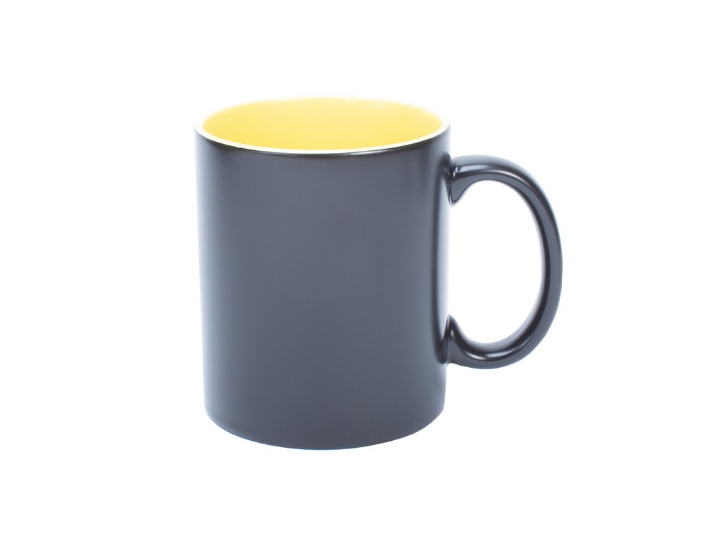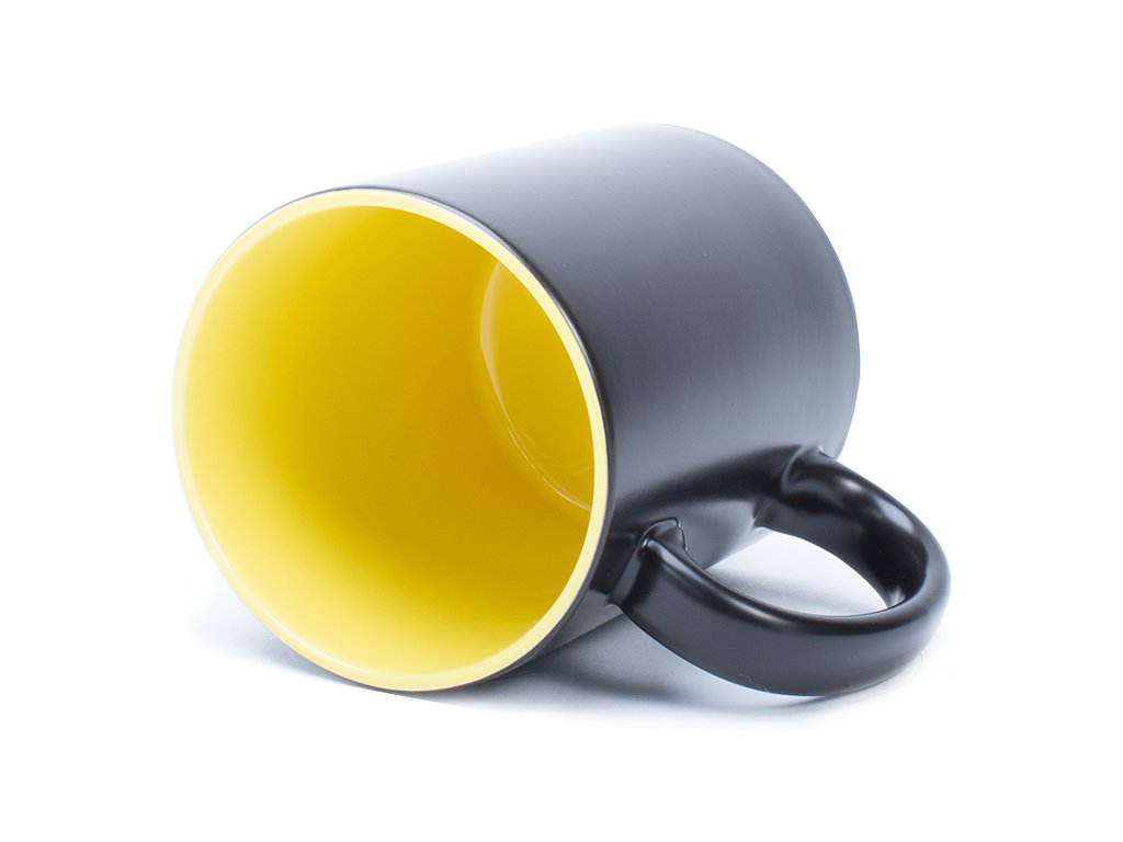 Měnící se černý hrneček s matným povrchem a žlutým vnitřkem