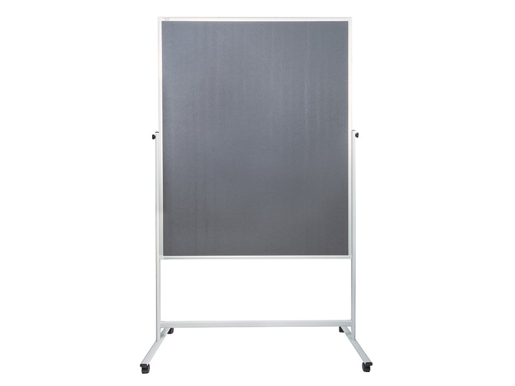 Mobilní textilní tabule ARTA s šedým filcovým povrchem v oboustranném provedení, hliníkovým rámem, stojanem lakovaným na šedo a pojezdovými kolečky pro snadnou manipulaci. Kvalita, elegantní design a potřebná robustnost, která je důležitá pro stabilitu tabule.