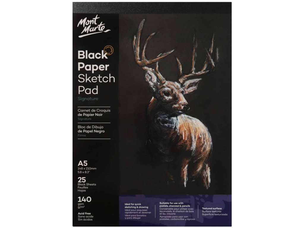 Mont Marte skicovací blok, černý papír, 140g/m², A5, č. 0061, 25 listů