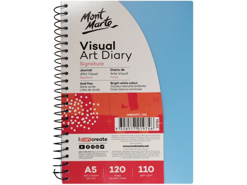 Mont Marte spirálový kreslicí blok, bílý papír, 110g/m2, A5, č.0077, 60 listů, 1ks – mix barev