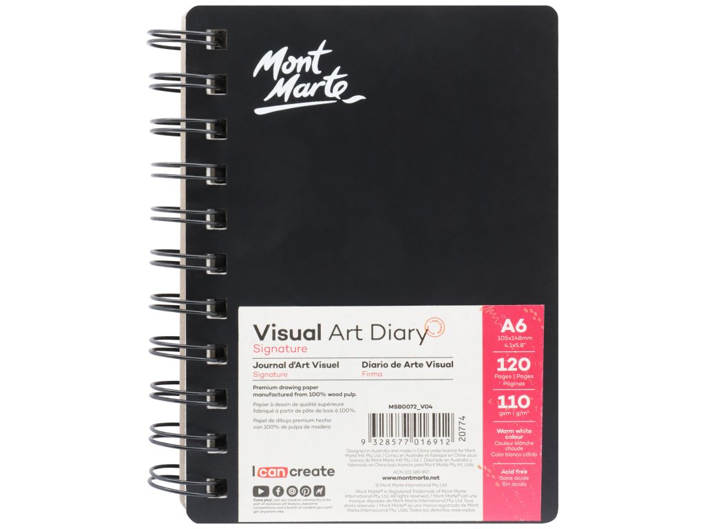 Mont Marte spirálový kreslicí blok, bílý papír, 110g/m2, A6, č.0072, 60 listů, černý