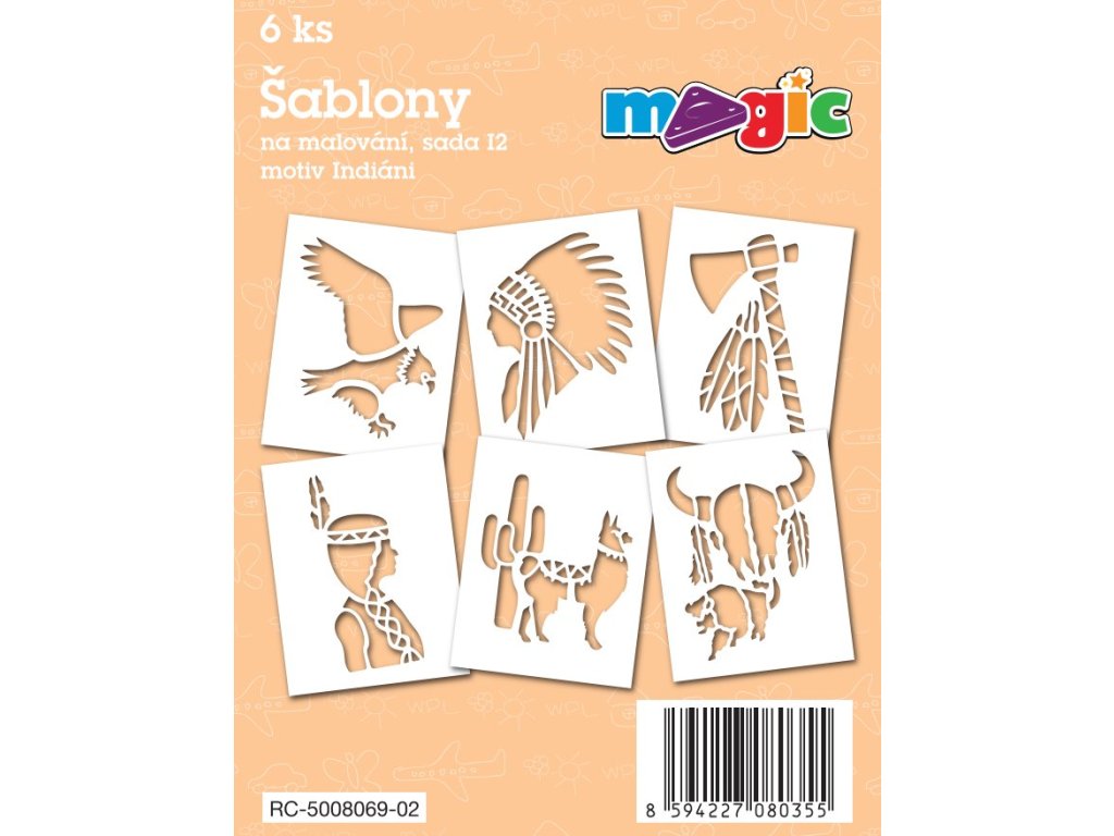 Papírové šablony MAGIC, 11x14cm, 6ks, sada I2 - INDIÁNI