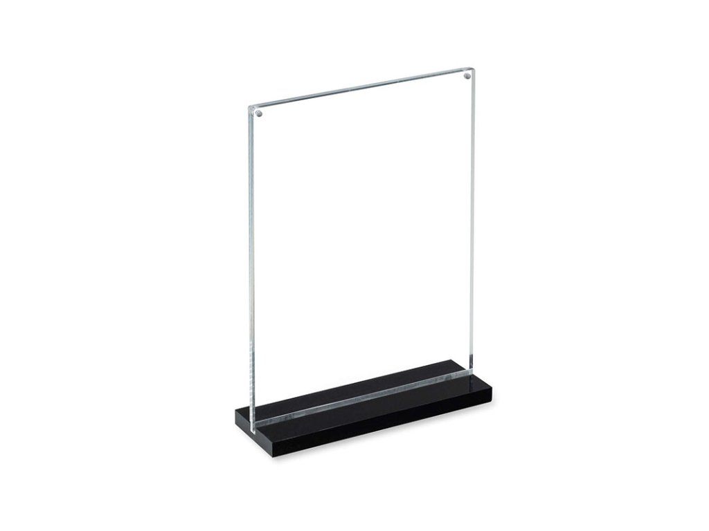 Elegantní oboustranný akrylový stojan. Široká základna zajišťuje stylový vzhled a stabilitu. Grafiku lze vyměnit doslova během několika vteřin jejím vložením mezi dva magnetické panely. Stojan je ideální pro použití ve veřejných prostorách, např. v restauracích, bankách a hotelech.