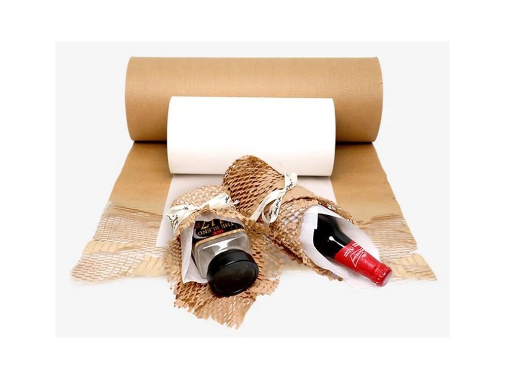 Voštinový kraftový papír je vyroben z dlouhých vláken jehličnanů. Pouze dlouhá vlákna mohou mít vysoký stupeň pružnosti a mohou být recyklována, biologicky odbourána a chránit životní prostředí. Voštinový papírový obal je role kraftového papíru, která je předem nařezána do tvaru voštiny.