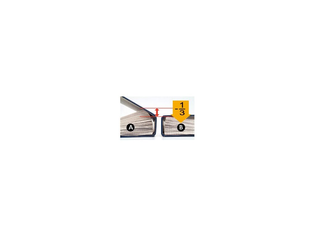 Způsoby zakončení drátku: flat clinch (rovné zakončení díky němuž nanabývá stoh na straně sešití)