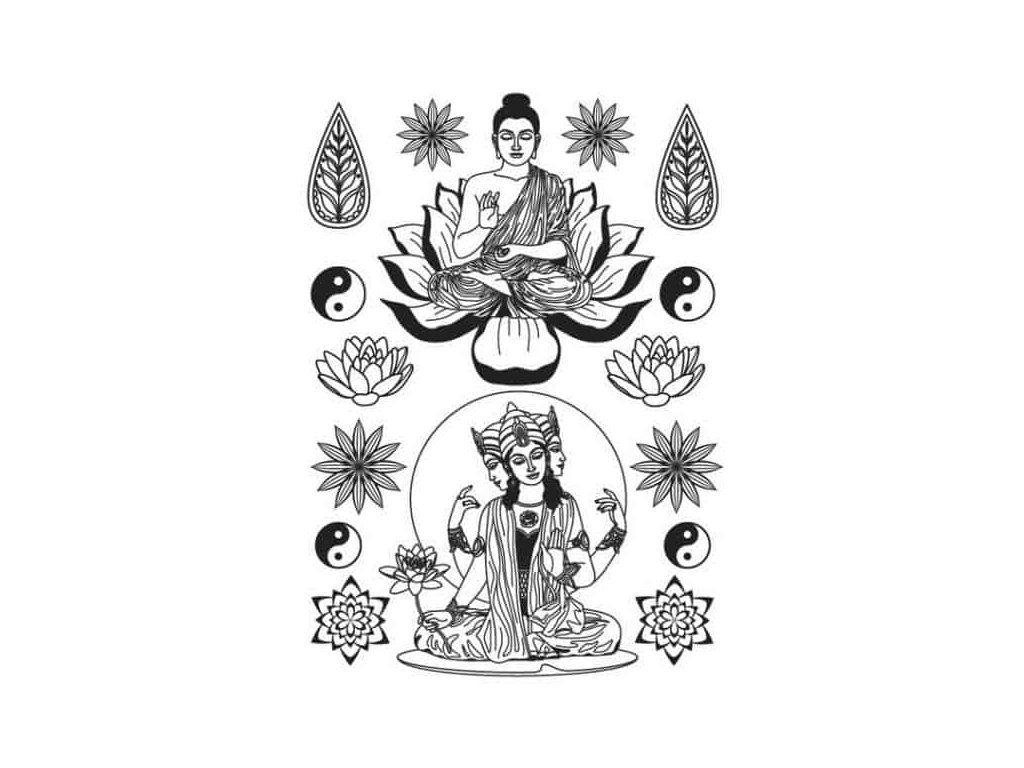 Samolepka na textil, zažehlovací, motiv BOUDDHA, černý