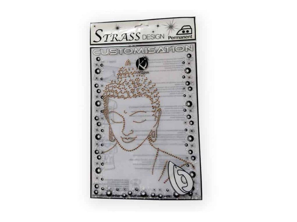 Samolepka na textil zažehlovací štrasová profil BOUDDHA, měď