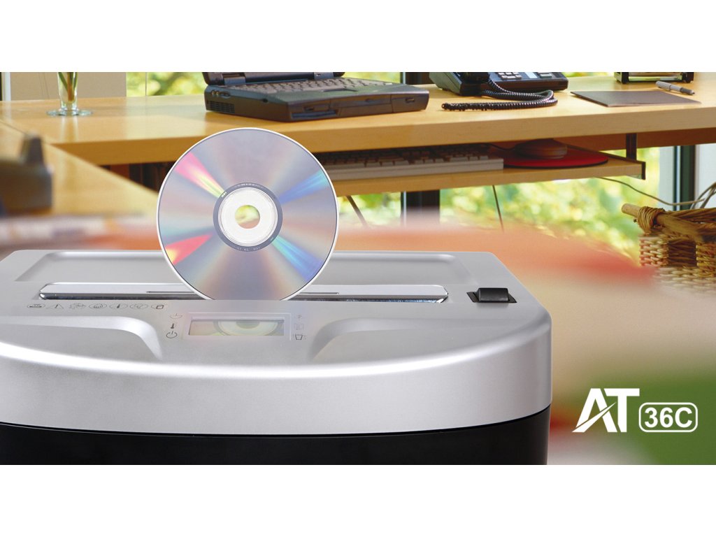 Skartovač AT-36C bez problémů zpracuje nejen papíry, ale i dokumenty se sešívacími sponkami či svorkami, aniž by bylo nutné je předem odstraňovat. Díky samostatnému vstupu lze skartovat také CD/DVD nosiče a plastové karty, což zajišťuje komplexní likvidaci citlivých dat.