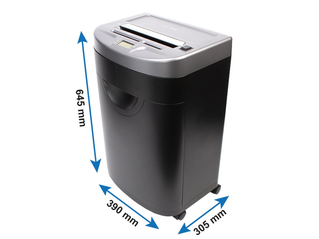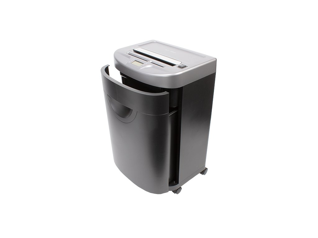 LCD displej poskytuje uživateli přehled o aktuálním stavu stroje a zapnutých funkcích. Moderní šedo-černý design skartovače se hodí do každého kancelářského prostředí. Rozměry 390 x 305 x 645 mm a hmotnost 18,8 kg zajišťují stabilitu a přitom snadnou manipulaci. Ta je možná také díky pojezdovým kolečkům.