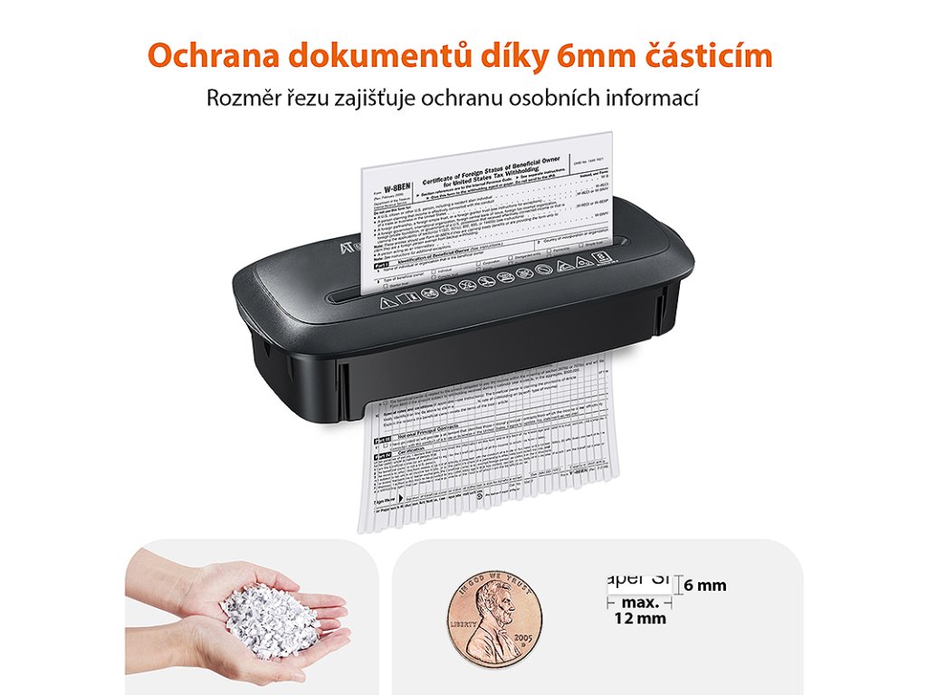 Skartovač AT-6S je Ideální pro nenáročné použití v malých firmách nebo domácí kanceláři, Vejde se pohodlně pod stůl nebo jinou pracovní stanici pro snadný přístup po celý den.