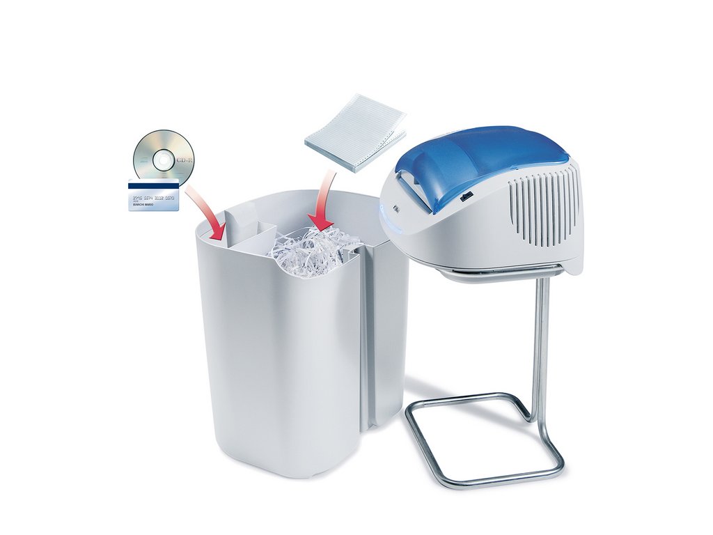 Osobní a stolní skartovačka s průhledným otevíracím víkem. Skartovat lze až 8 listů najednou v křížovém řezu 1,9 x 15 mm (P-5) pouhým vložením do vstupu na přední straně. CD, DVD a kreditní karty skartuje jejich vložením do separovaného vstupu. Tepelná ochrana motoru umožnuje 24 hodin nepřetržitého provozu motoru bez přehřátí. Uhlíkově tvrzené řezné nože si poradí i se sešívacími a kancelářskými sponkami.