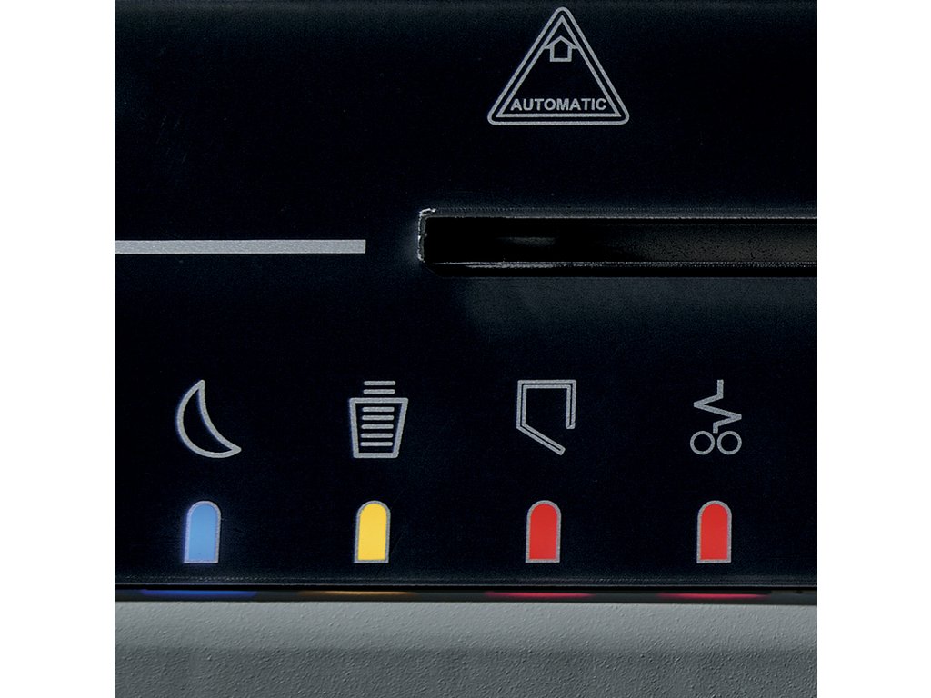 Skartovačka je vybavena Energy Smart Systémem - automatickým odpojením od elektrické sítě pro maximální úsporu energie, automatickým Start&Stopem, bezpečnostním zastavením při otevření dvířek, plném vaku s odpadem a automatickým zpětným chodem v případě zaseknutí. Skříň o objemu 40 litrů je opatřena kolečky.