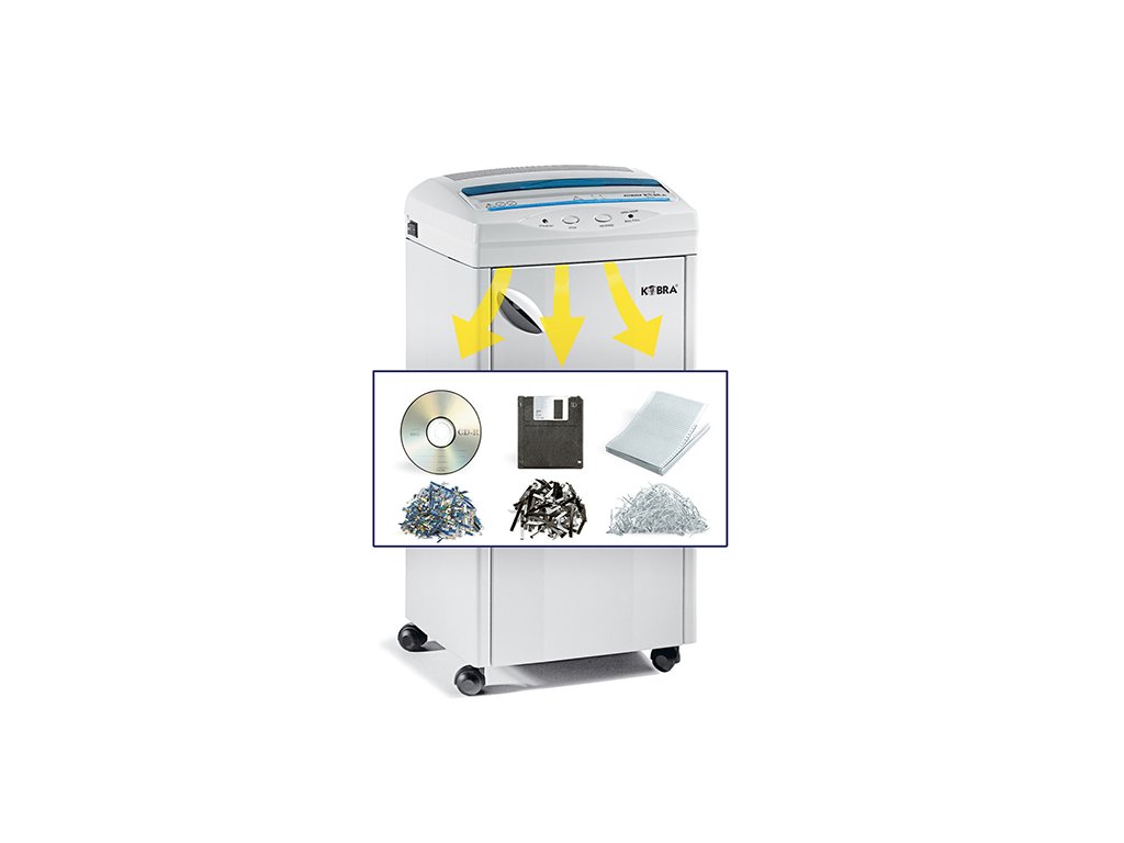 Skartovačka je vybavena systémem Energy Smart šetřícím energii, který po 8 sekundách nečinnosti přepne stroj do pohotovostním režimu, automatickým Start&Stopem, automatickým zpětným chodem v případě zaseknutí papíru. Systém Safety stop automaticky zastaví řezací nože, jakmile detekuje otevření dvířek. Praktická odpadní nádoba o objemu 85 l je umístěná na kolečkách.