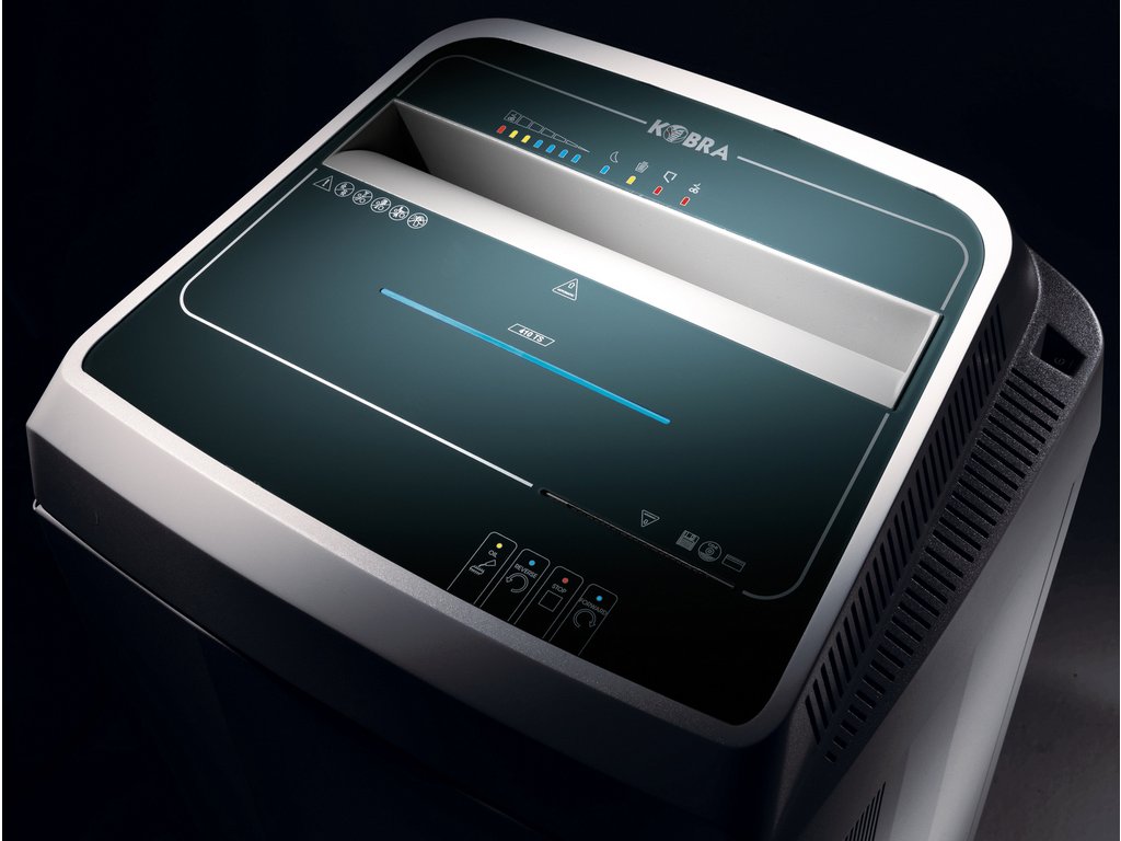 Profesionální skartovačka s dotykovým displejem, kdy se všechny ovládací prvky aktivují pouhým dotykem panelu. Tepelná ochrana výkonného 2600 W motoru umožňuje 24 hodin nepřetržitého provozu bez přehřátí a pracovního cyklu. Skartovač Kobra 410 TS C4 dokáže najednou skartovat až 56 listů v křížovém řezu 3,9 x 40 mm (P-4). Dokáže skartovat i průhledné folie. Odolný řetězový pohon s ocelovými převody a řezacími noži z tvrzené uhlíkové oceli nabízejí spolehlivost a odolnost proti opotřebení.