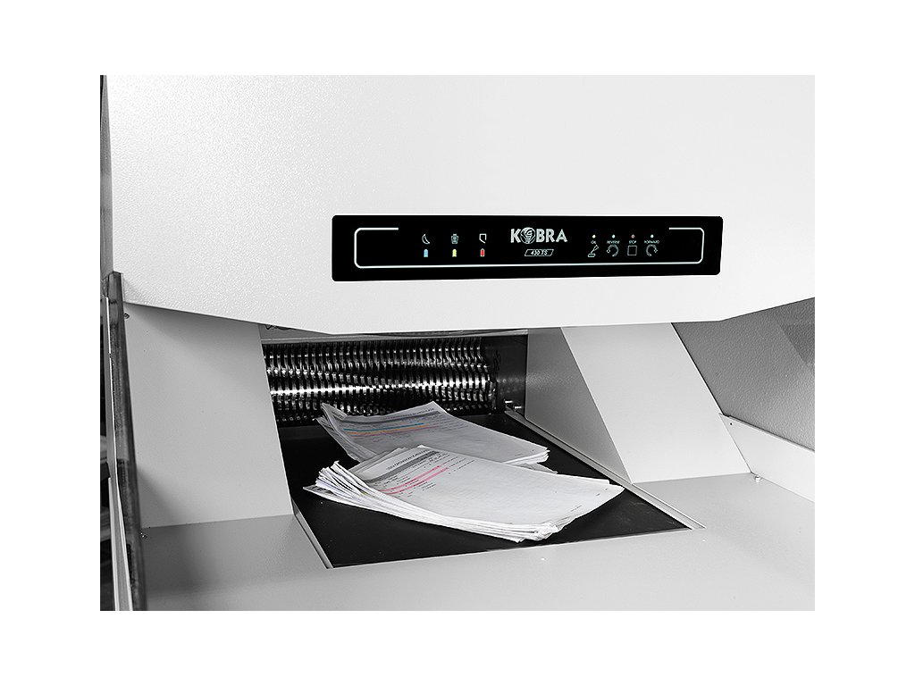 Vysoce výkonný pásový průmyslový skartovač navržen pro vysoký výkon skartace a nepřetržitý provoz. Stroj je vybaven pohodlným pásovým dopravníkem pro snadné podávání materiálu ke skartaci. Najednou lze skartovat až 130 listů papíru. Kobra 430 TS skartuje také CD, DVD, kreditní karty, diskety v křížovém řezu 1,9 x 15 mm (P-5). Je vybaven super silnou pohonnou jednotkou sestávající se z systému těžkého řetězového pohonu s ocelovými převody. Řezné nože z uhlíkové kalené oceli si hravě poradí i se sešívacími a kancelářskými sponkami. Tepelná ochrana motoru umožňuje nepřetržitý provoz 24 hodin bez nutnosti pracovního cyklu či chlazení.