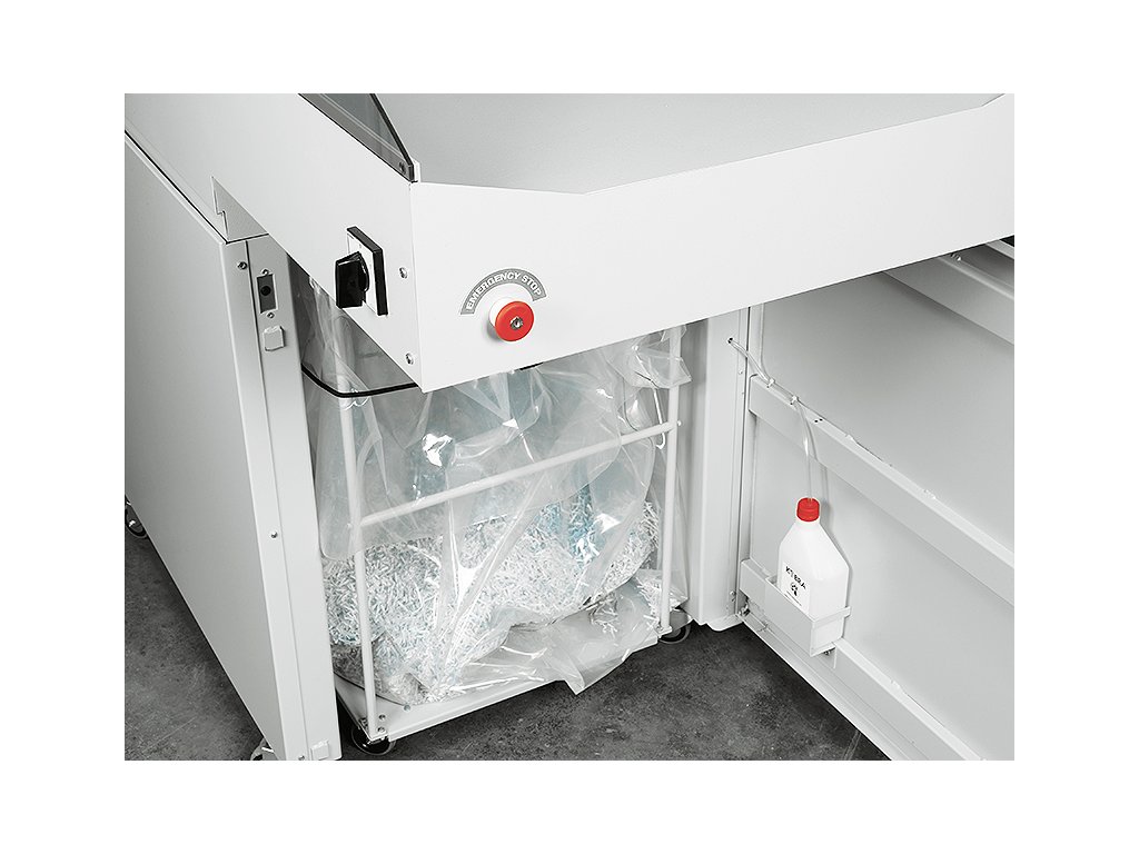 Kobra 430 TS je dodávána s integrovaným automatickým systémem mazání, který zajišťuje maximální účinnost. Automatické zastavení se světelným signálem pro plnou nádobu na odpad nebo otevřená dvířka skříně. Odnímatelná a robustní nádoba na odpad o objemu 470 litrů je umístěná na kolečkách. Nádobu lze uspořádat dvěma způsoby, a to buďto dvěma plastovými vaky na odpad o objemu 235 litrů nebo jedním o objemu 470 litrů.