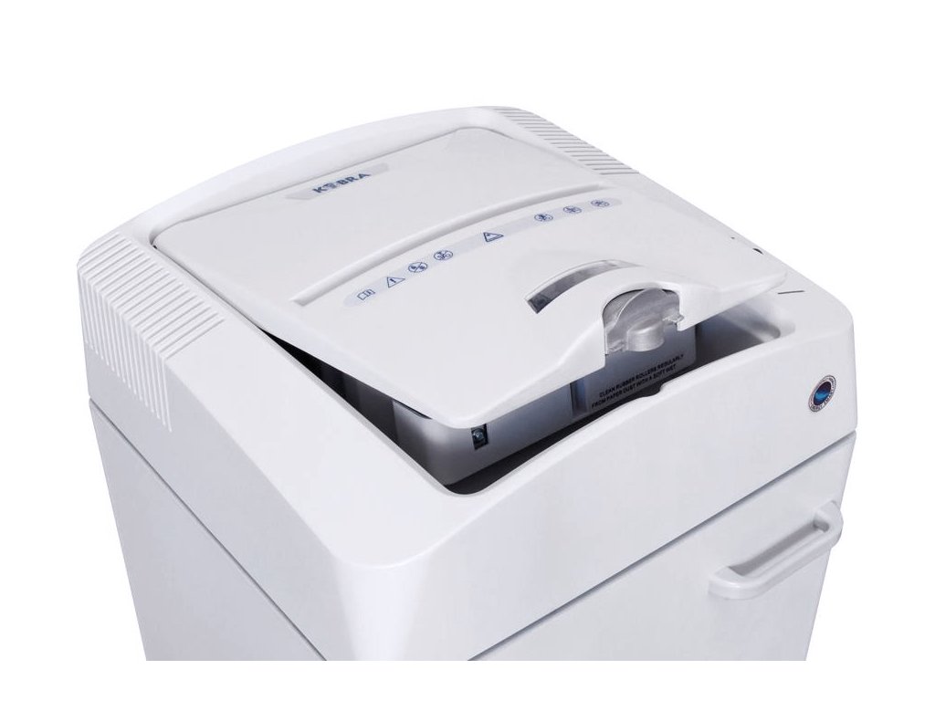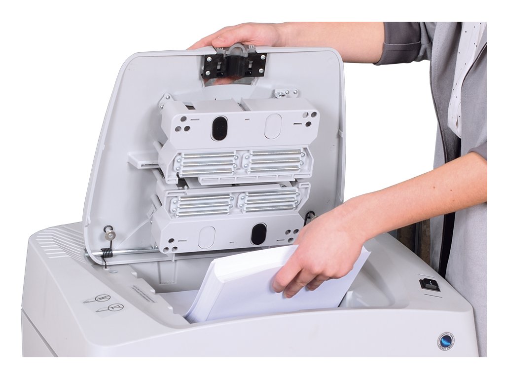 Skartovačka Kobra AF+1 o objemu 40 litrů s automatickým podavačem umožňuje skartovat dokumenty formátu A4 v křížovém řezu 3,5 x 40 mm (P-4). Tato automatická skartovačka je vybavena velkým zásobníkem na 300 listů papíru s malým okénkem na víku, které umožňuje kontrolovat konec skartačního procesu. Skartovač Kobra AF+1 40 l má další samostatný vstup pro ruční skartování.